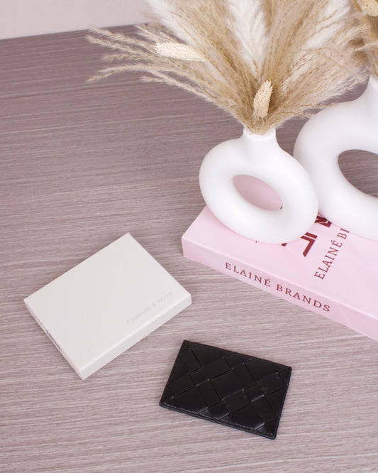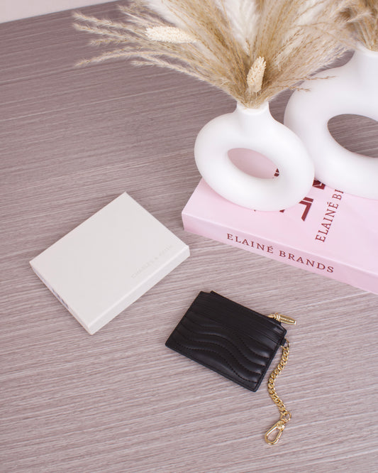 Aubrielle Stitch-Trim Zip Card Holder - Black