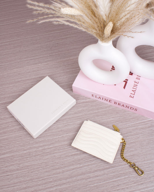 Aubrielle Stitch-Trim Zip Card Holder - Cream