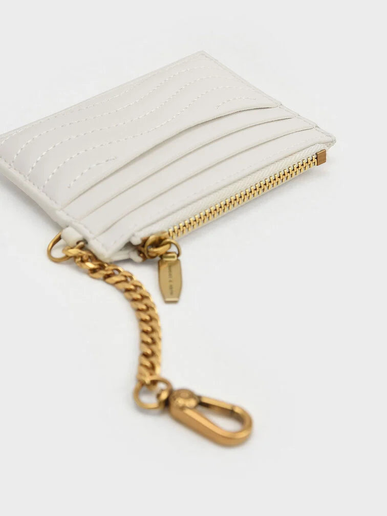 Aubrielle Stitch-Trim Zip Card Holder - Cream