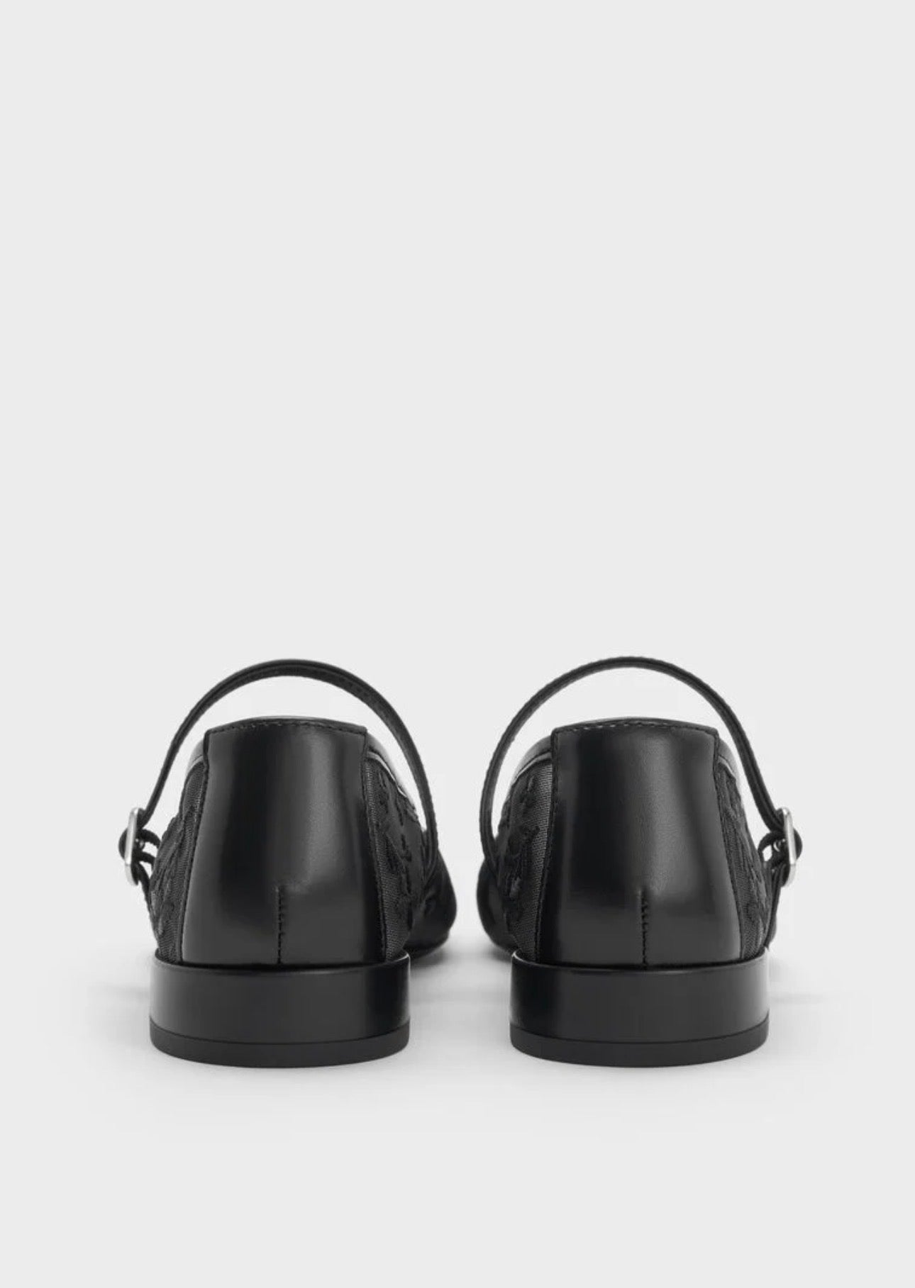 Gertrude Mesh Embroidered Floral Mary Janes - Black
