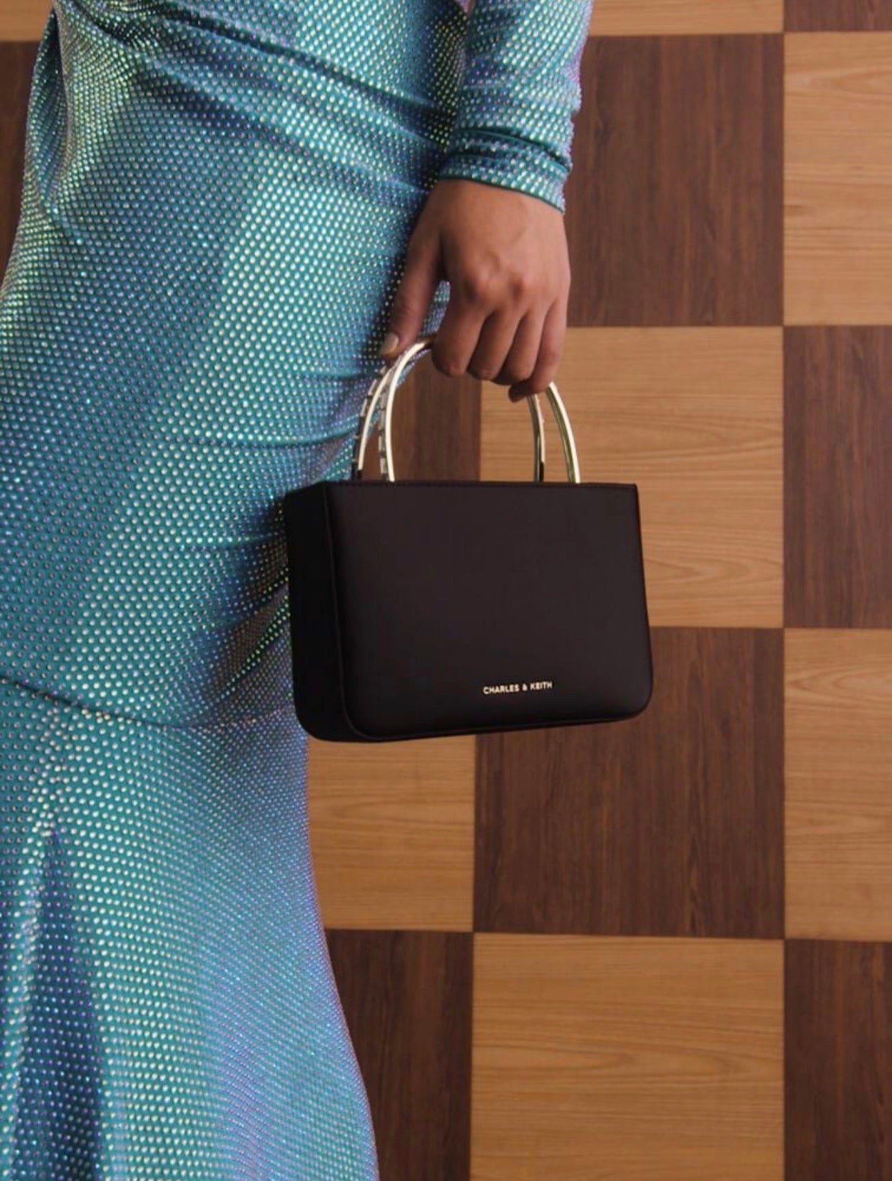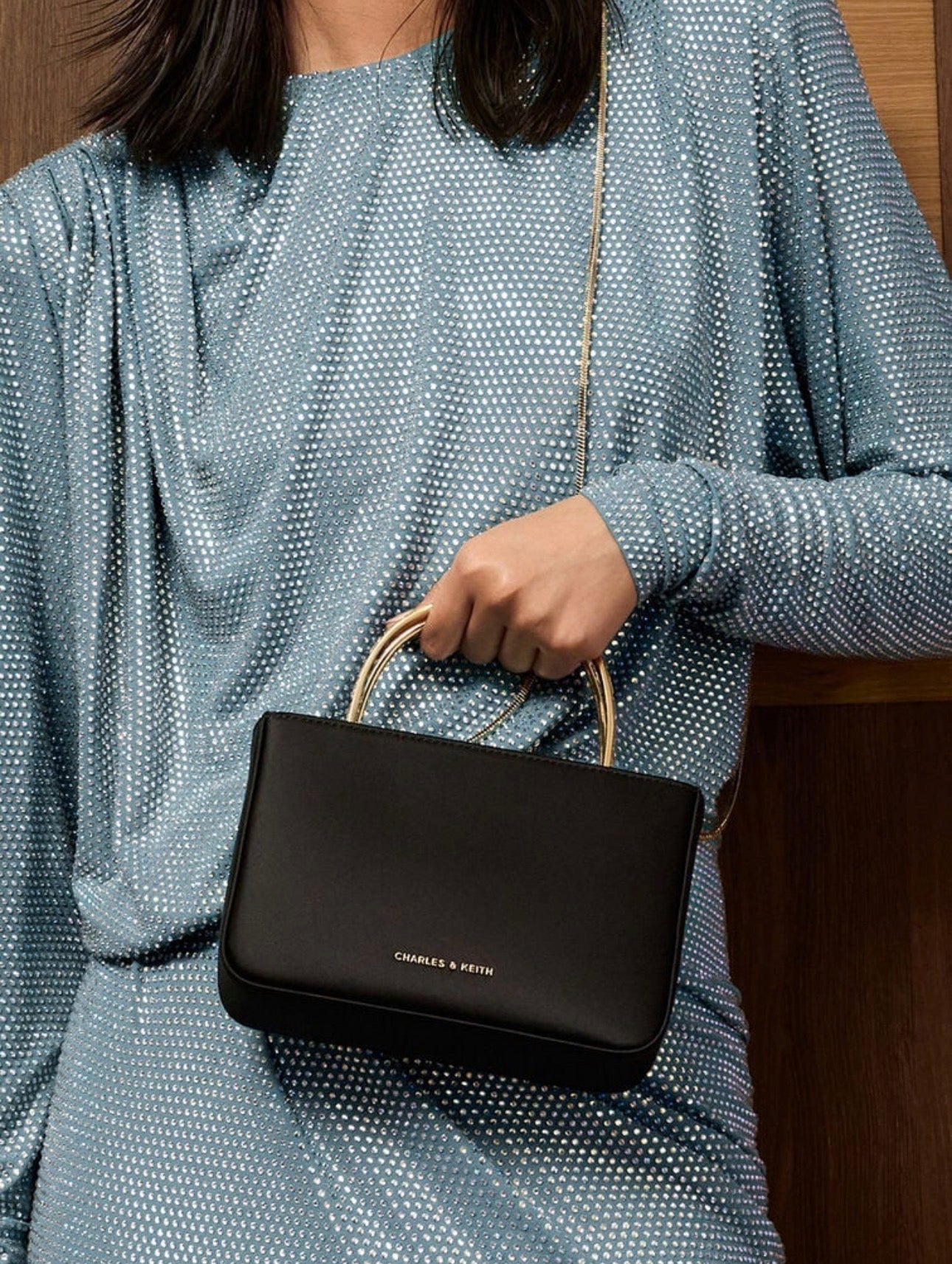 Satin Crystal-Embellished Top Handle Bag - Black